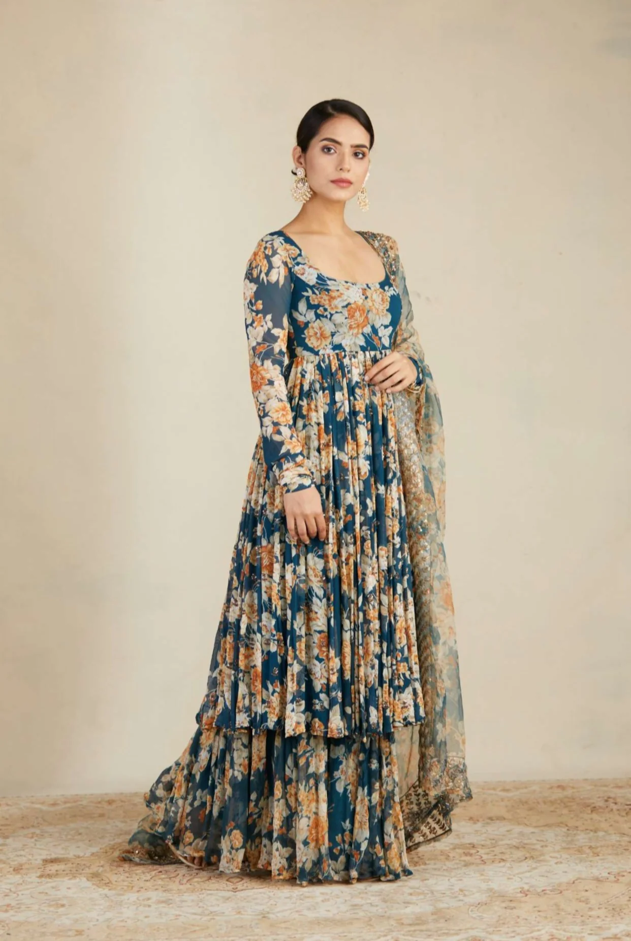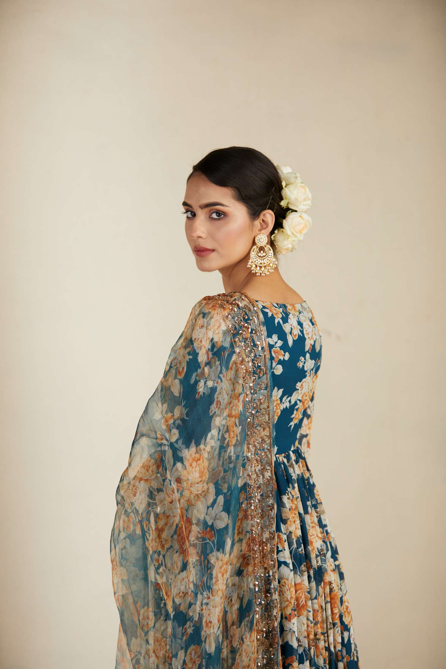 Be the first to review “Teal Blue Georgette Floral Anarkali Set”